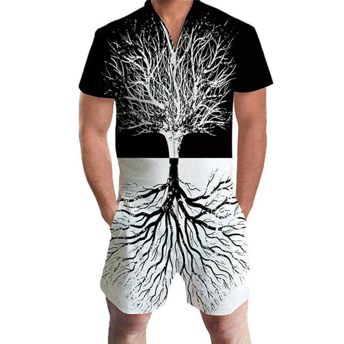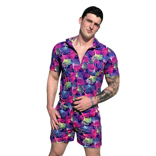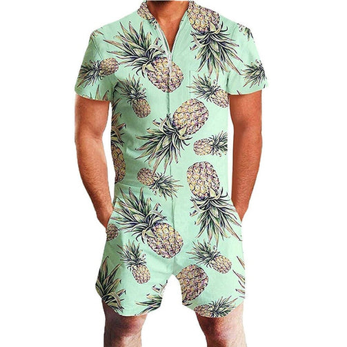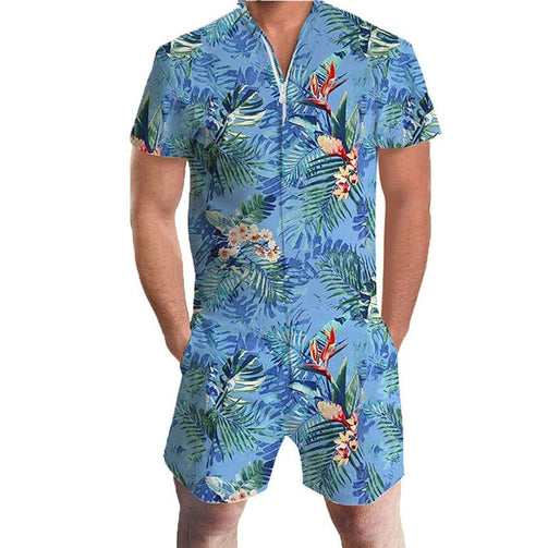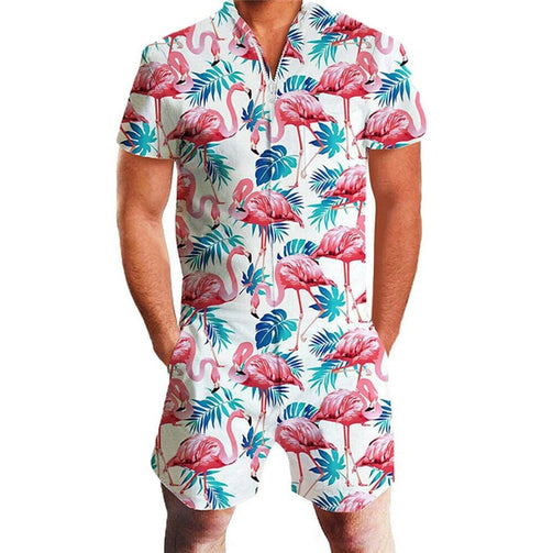 2019 Hawaiian Tiger & Flamingo Print 3D Rompers Men Jumpsuit Playsuit Harem Cargo Overalls Summer Casual Zipper Beach Men's Sets