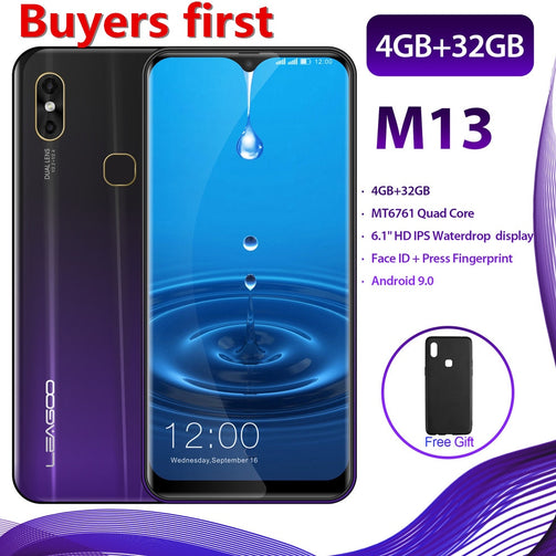 2019 new Original LEAGOO M13 Android 9.0 19:9 6.1"FHD 4GB RAM 32GB ROM MT6761 Quad Core Face ID 4G LTE Waterdrop Mobile Phone