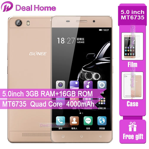 Gionee GN5001S 5.0 IPS Display 4000mAh MT6751 Quad Core 3GB RAM 16GB ROM Smart phones 8.0MP + 5.0 MP OTG GPS 4G MObile phone