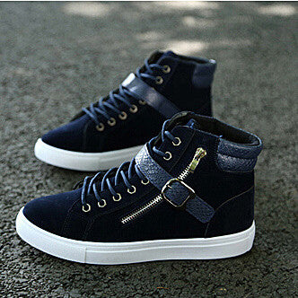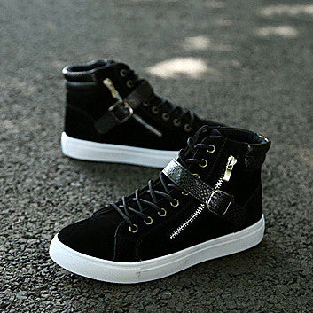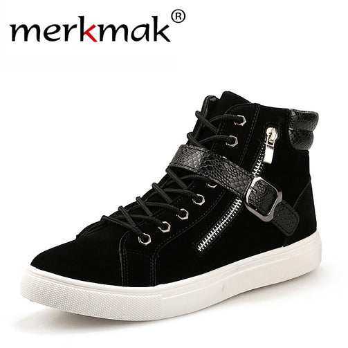 New 2017 fashion men boots brand design men ankle boots casual flock PU patchwork punk rock chain high top flat shoes for men