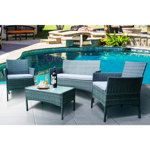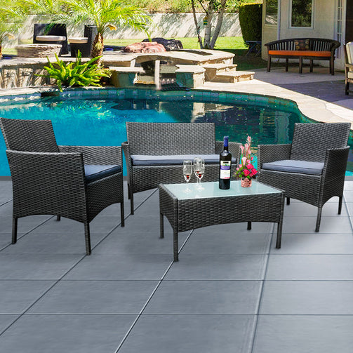Panana Rattan Sofa Chair Table Set of 4 Hot Sale Wicker Garden Furniture Coffee Table Rattan Sofa Chair Stool