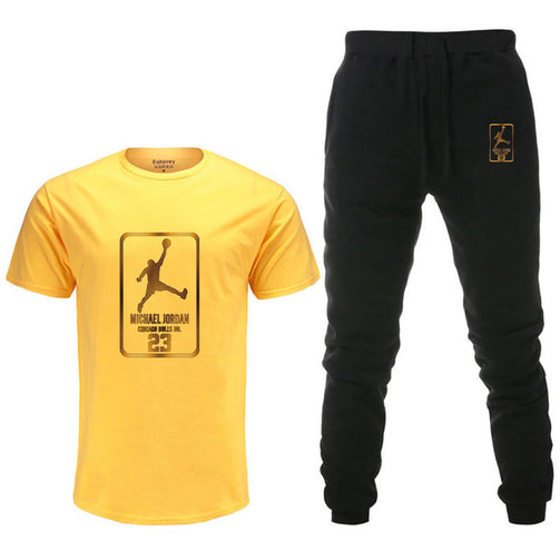 Summer Hot Sale Men's Sets T Shirts+pants Two Pieces Sets Casual Tracksuit Male Tshirt Gyms Fitness trouser