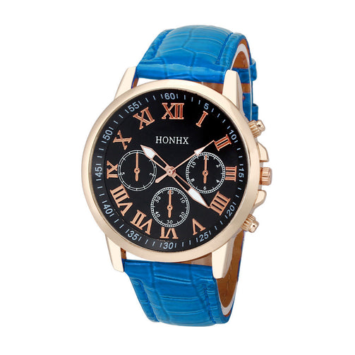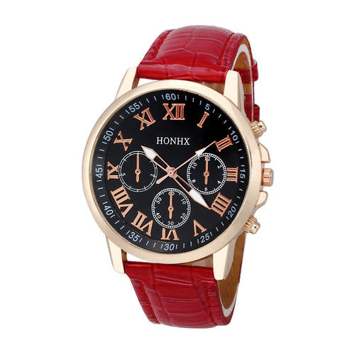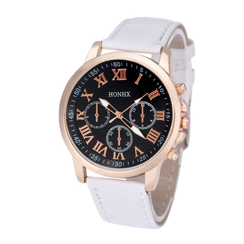 Womens Roman Numerals Faux Leather Analog Quartz Watch